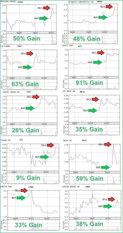 Over those 30 days, each of the 10 stocks returned an average of 45%, and most of them did so in less than 48 hours!
