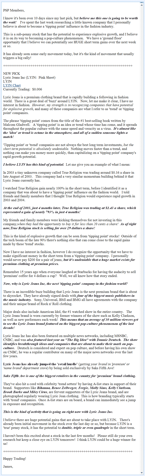 James, I bought last weeks pick at $0.02, sold at $0.07 and made $3000. That's 240% gains!